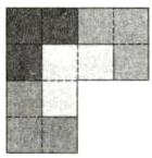 解析 题图中一共有12个小方格,把题图分成4个形状和大小都相同的小图形,每个小图形中含有3个小方格,试着用不同的方法画一画,即可得到正确答案。