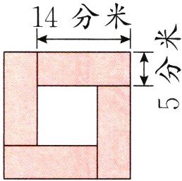6 下图是用4个长14分米、宽5分米的长方形拼成的新图形,中间的空白部分是一个正方形,空白部分的面积是多少平方分米?