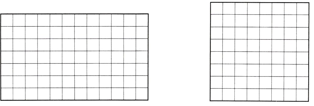 8 下图中每个小方格表示1平方厘米,把下面的大长方形和大正方形分成长3厘米、宽2厘米的小长方形,最多各能分成多少个?画一画,填一填。