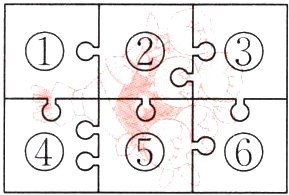 3. 右面是小军的6块拼图卡片,面积相同的两块是( )。