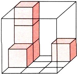 4. 如右图,童童在一个透明箱子里放了一些小正方体。这个箱子里一共能放( )个这样的小正方体。现有小正方体的个数是一共能放小正方体个数的$\frac{()}{()}$。