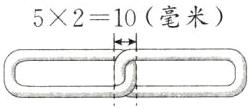 8. 用25个大小相同、粗5毫米的铁环按如下图所示的方式连接成一根铁链,这根铁链拉紧后的长度是多少毫米?