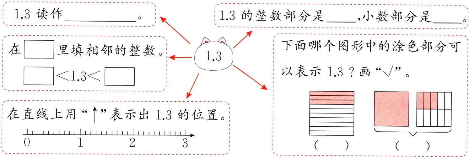 下面哪个图形中的涂色部分可以表示1.3?画“√”。
