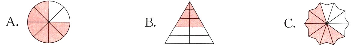 (1)下面图形中,涂色部分表示0.6的是( )。