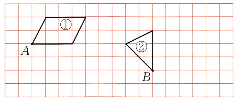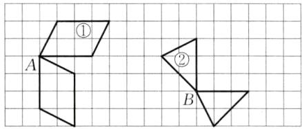(2)画出图形②先绕点B逆时针旋转90°,再向右平移3格后的图形。