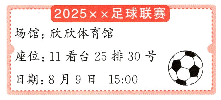 6. 下图是小明买的足球比赛门票,小明的座位在足球场观众席最后一个看台最