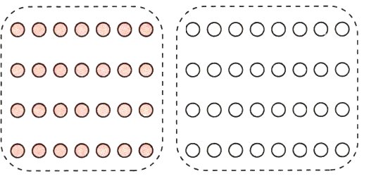 1. 要数出下面圆片的个数,明明和芳芳分别用了不同的方法(如下图)。请你看图写一写。