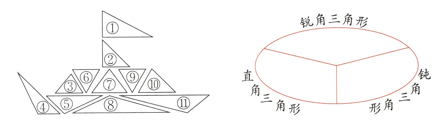 6. 右图中,有( )个直角三角形,有( )个钝角三角形,有( )个锐角三角形。