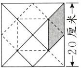 解析 七巧板可以分成16个完全相同的小三角形,如图。求出每个小三角形的面积是$20\times20\div16 = 25$(平方厘米),涂色部分是两个这样的小三角形,那么涂色部分的面积是$25\times2 = 50$(平方厘米)。