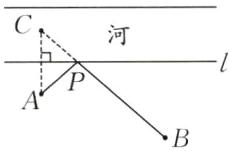 3. 如图,牧马人在草地(点A)牧马,他要先牵马到河边(直线l)饮水,再到帐篷(点B)休息。请你帮他确定这一活动的最短路线。