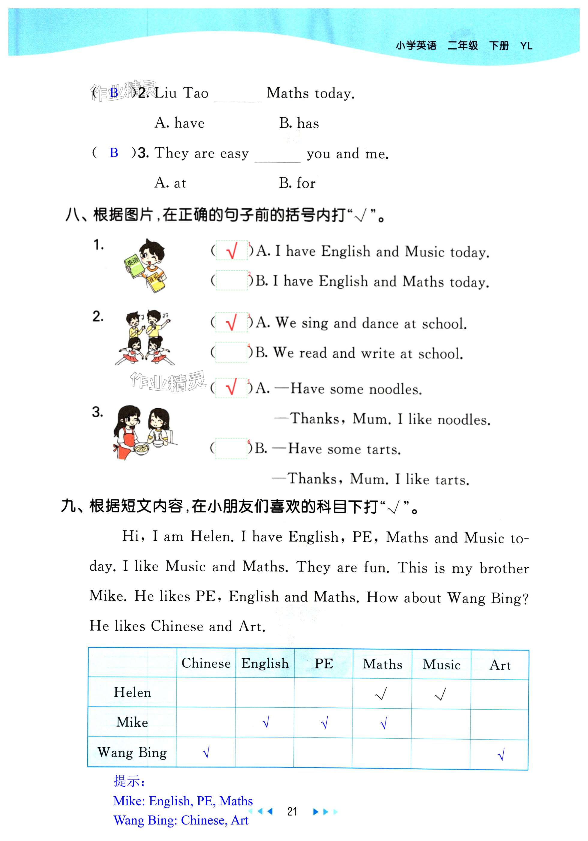 注:目前有些书本章节名称可能整理的还不是很完善,但都是按照顺序排列的,请同学们按照顺序仔细查找。练习册 2025年53天天练二年级英语下册译林版 答案主要是用来给同学们做完题方便对答案用的,请勿直接抄袭。