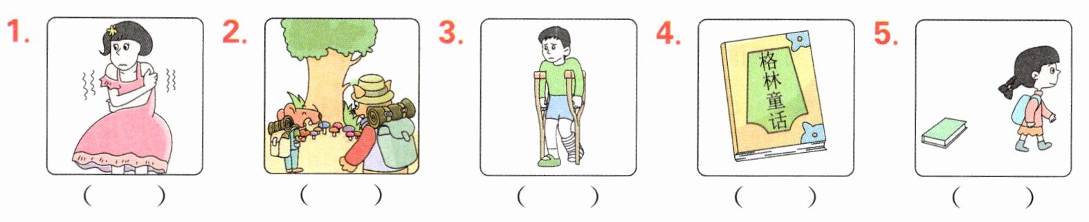 (一)听短文,根据故事发展顺序,给下列图片排序。
