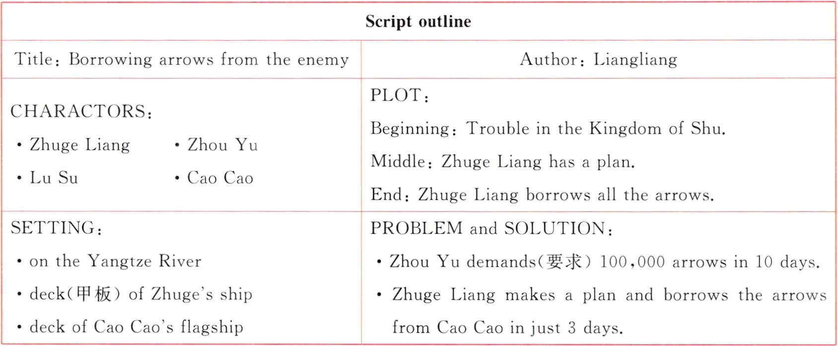 4. 新趋势 学科融合 The script outline is about the story “________(填中文)” in The Romance of the Three Kingdoms.