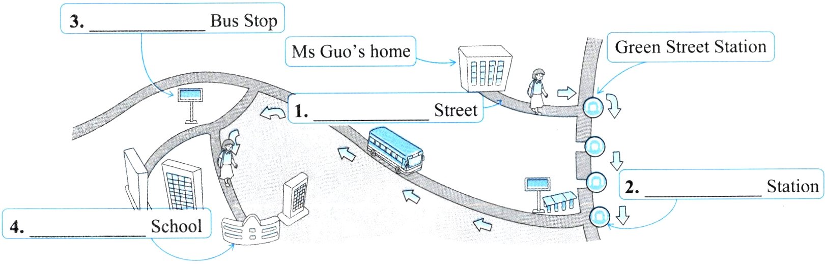 Ms Guo is a teacher at Happy Primary School. She lives on Green Street. There is a metro station near Ms Guo’s home.
