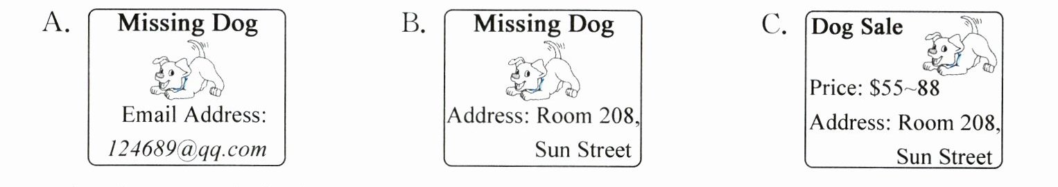(一)1. B 解析:根据“It says ‘Missing Dog’ and there is a photo ... Sarah finds the address on it.”可知,寻狗启事上有文字“Missing Dog”、一张狗的照片和主人的地址,B选项符合短文中对于寻狗启事的描述。故选B。