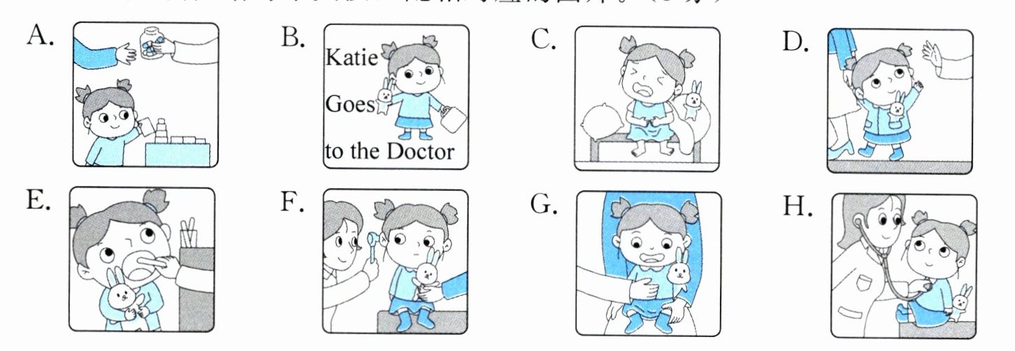 ( )3. Next, my mum takes me to the doctor. “Good morning,” the doctor says. “How are you, Katie?” The doctor needs to listen to my chest.