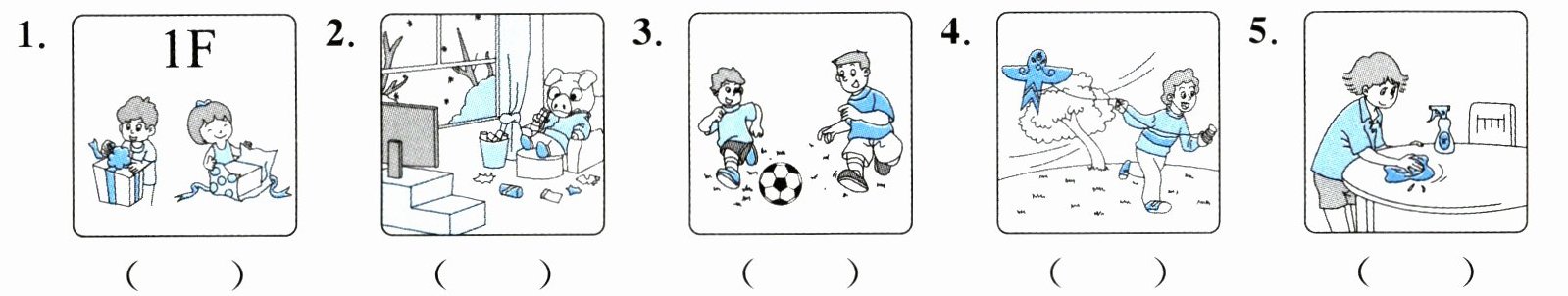 ( )1. A. Sweeping the floor. B. Cleaning the table. C. Washing the dishes.
