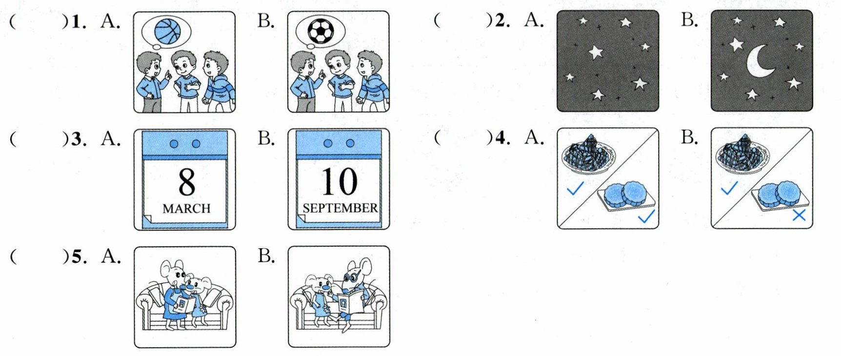一、听录音,选出与所听内容相符的图片。(听两遍,5分)