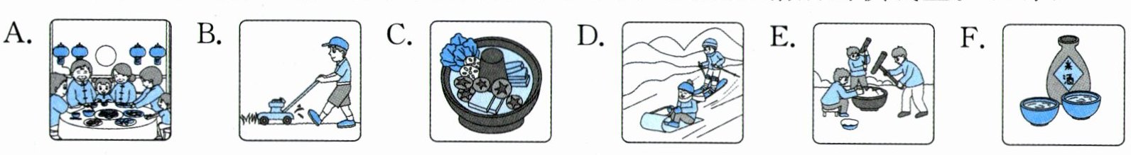 |It falls on January 5th—7th. People start stocking New Year goods(商品). Mutton hot pot, chestnuts(栗子)and baked sweet potatoes are three recommended(推荐的) food for Minor Cold.|5. ________|It falls on January 20th and 21st. In this solar term, people drink stewed(炖的) soup. In some places, people always buy sesame straw(芝麻秸)and do winter sports such as skiing and ice skating.|6. ________|