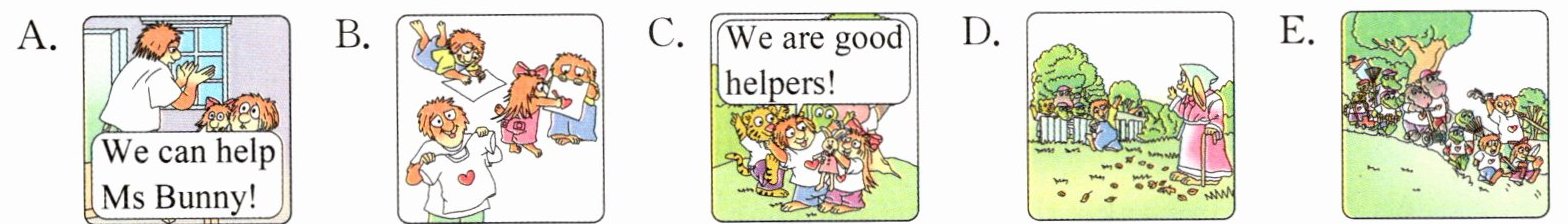 ( )2. On Sunday, Dad tells us, “Ms Bunny is not feeling well. She has no one to help her do some housework.” “We can help her!” My sister and I want to help.