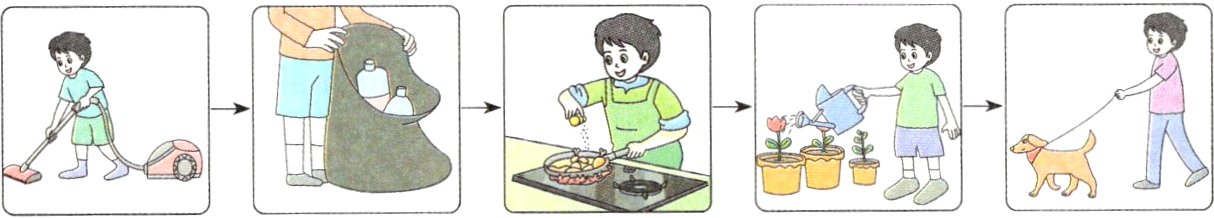 a. Help to take care of flowers and pets. b. Help to cook.