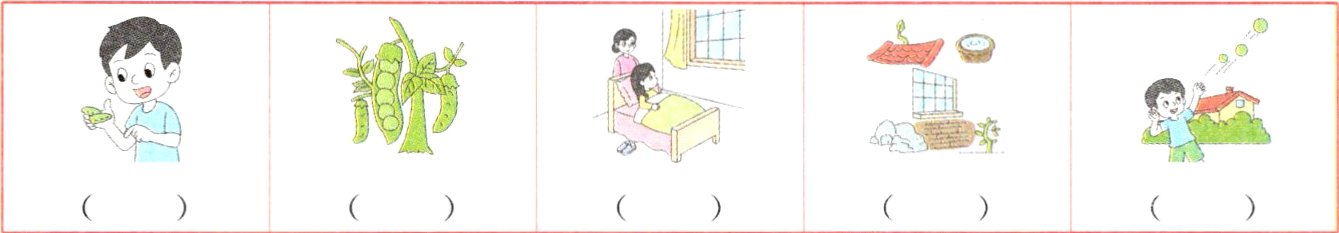One day,a boy________ the pod and takes the peas out of the pod. The boy throws the peas into the sky one by one. The first pea falls onto a roof,and a bird________ it. The second pea falls into some water. The third and________ peas fall into a yard,and two chickens eat them. The________ pea hits a________ and falls onto the ground. Soon,it grows into a plant.