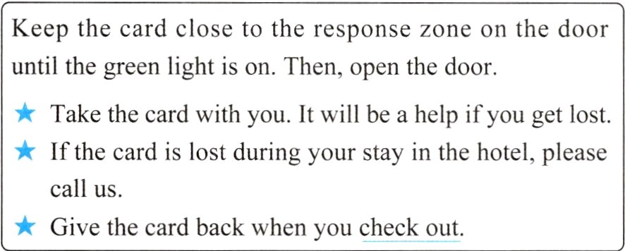 Mr Zhang is travelling in another city. He lives in a hotel. This is his room card.