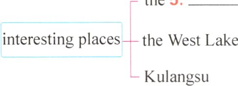 四、亮亮正在参加“最美中国”演讲比赛。听录音,根据亮亮的演讲内容,完成下面的思维导图。(每空一词)(听两遍)