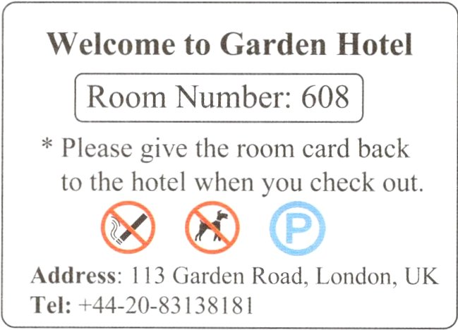Famous places: City Library, Garden Theatre, Happy Shopping Centre Transportation: City Line ( )1. The hotel is at 113 on Garden Road in London.( )2. Mr Li can take his pet to Garden Hotel.( )3. If Mr Li wants to see The Monkey King, he can go to Garden Theatre.( )4. You can only take the No. 12 bus or the metro to Garden Hotel.( )5. Mr Li needs to stay one night more, he should pay $860.
