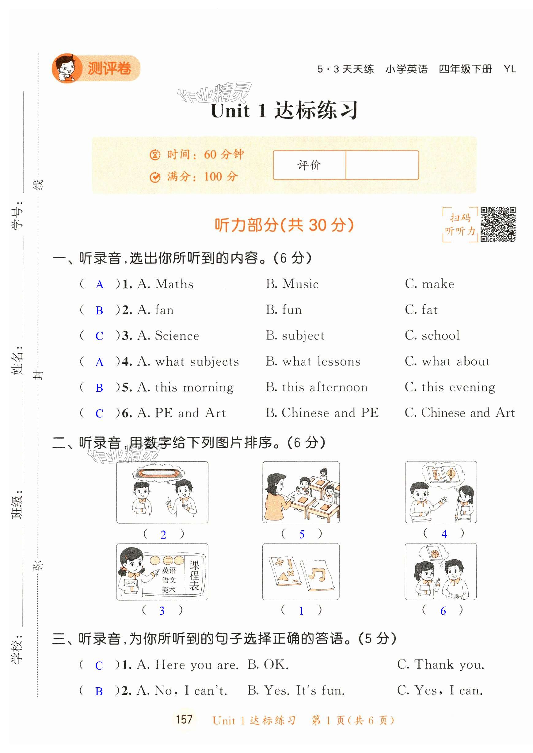 注:目前有些书本章节名称可能整理的还不是很完善,但都是按照顺序排列的,请同学们按照顺序仔细查找。练习册 2025年53天天练四年级英语下册译林版 答案主要是用来给同学们做完题方便对答案用的,请勿直接抄袭。