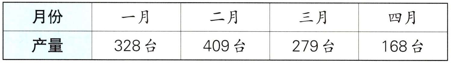 (1)328 + 409 = 737(台) 答:一月和二月共生产737台。(2)279 - 168 = 111(台) 答:四月比三月少生产111台。(3)(答案不唯一) 409 + 279 ≈ 680(台) 答:二月和三月一共大约生产680台。