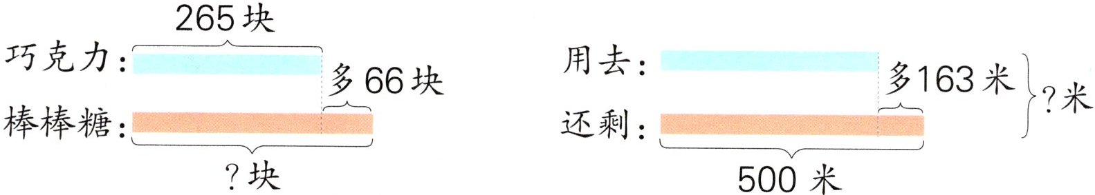 左图:$265 + 66 = 331$(块)\n右图:$500 - 163 + 500 = 837$(米)