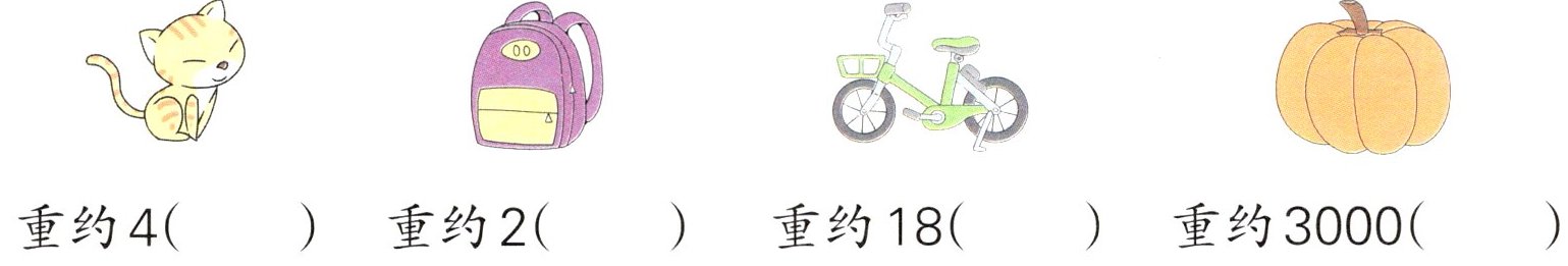 1. 用手掂一掂,估计下面的物品比1克重还是轻。(填“重”或“轻”)