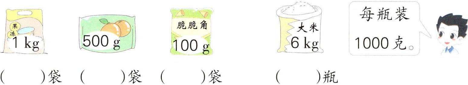 3. (1)几袋重1千克? (2)可以装几瓶?