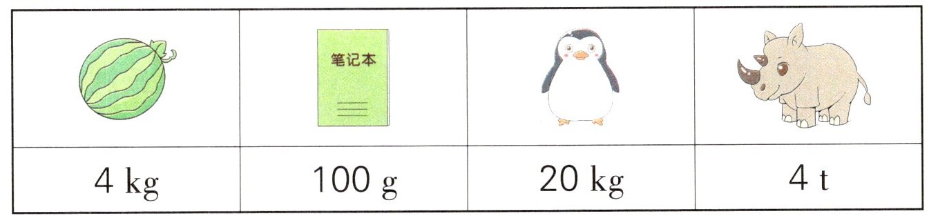 (1)犀牛最重,笔记本最轻。@@(2)4 t = 4000 kg