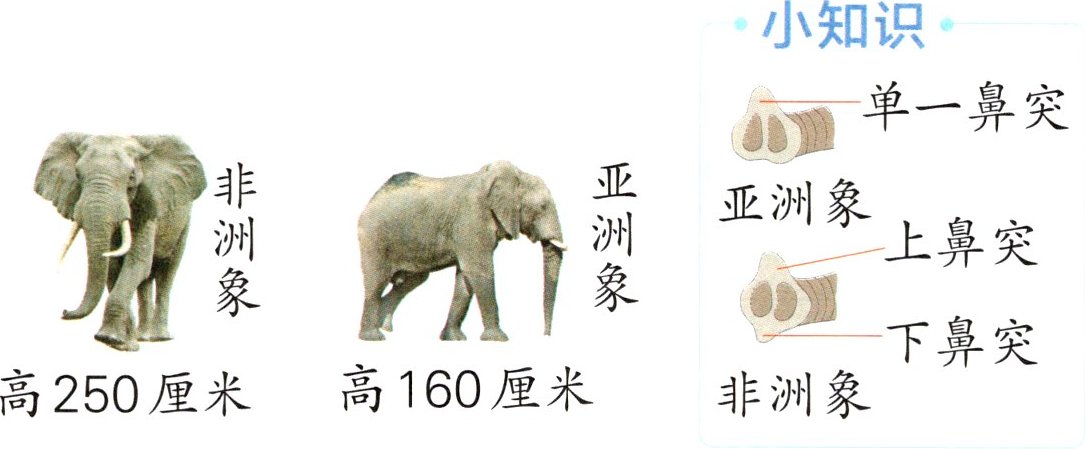 2. (原创题)非洲象比亚洲象高多少厘米?