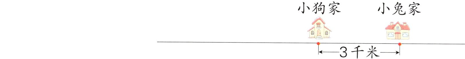 4. 小松鼠家、小狗家、小兔家都在同一条路上,小松鼠家到小狗家5000米,小松鼠家到小兔家有多远?(先画一画)