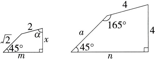 ∴$\sqrt{2}:a=x:4=m:n = 1:2$,得$a = 2\sqrt{2}$,$x = 2$,$2m = n$,又