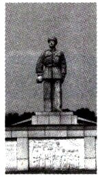 14.方程思想 (2022湖南衡阳中考,11,★☆☆)在设计人体雕像时,使雕像上部(腰部以上)与下部(腰部以下)的高度比等于下部与全部的高度比,可以增加视觉美感.如图,按此比例设计一座高度为2 m的雷锋雕像,那么该雕像的下部设计高度约是(参考数据:$\sqrt{5}$≈2.236)(M9227001) ( )