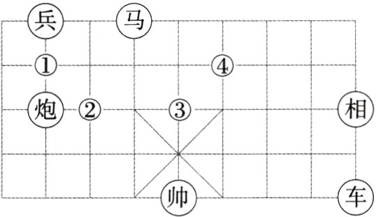 解析 由题图可知“帅”“车”“相”所在位置的格点连接成的三角形的三边长分别为4,2,$2\sqrt{5}$,“兵”“炮”所在位置的格点之间的距离为2,“炮”与②所在位置的格点之间的距离为1,“兵”与②所在位置的格点之间的距离为$\sqrt{5}$,