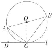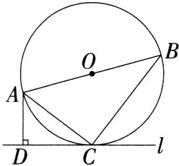17.(10分)(2024江苏盐城中考)如图,点C在以AB为直径的⊙O上,过点C作⊙O的切线l,过点A作AD⊥l,垂足为D,连接AC、BC.
