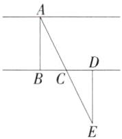 (3)(答案不唯一,合理即可)如图,在河对岸找一个参照物A,站在A的正对面B的位置,沿着河岸走一段距离,到达C处,在C处竖立一标杆,然后继续行走,走到D处,使得CD = BC,再沿着与河岸垂直的方向行走,当走到与A、C共线时停下,位置记为E,这时DE的长度即为河流的宽度.