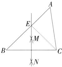 11.(2024四川乐山犍为模拟,8,)如图,在△ABC中,按以下步骤作图:①分别以点B和C为圆心,以大于$\frac{1}{2}$BC 的长为半径作弧,两弧相交于 点M和N;②作直线MN交边 AB于点E.若AC = 5,BE = 4, ∠B = 45°,则cos A =(M9228001) ( )