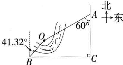 11.(2024宁夏吴忠盐池一模,15,★★☆)某区域平面示意图如图所示,点O在河的一侧,AC和BC表示两条互相垂直的公路.甲勘测员在B处测得点O位于北偏东41.32°,乙勘测员在A处测得点O位于南偏西60°,测得AC = 300 m,BC = 400 m,则点O到AC的距离约为________m.(结果保留整数.参考数据:sin 41.32°≈0.66,cos 41.32°≈0.75,tan 41.32°≈0.88,$\sqrt{3}\approx1.73$)(M9228005)