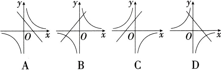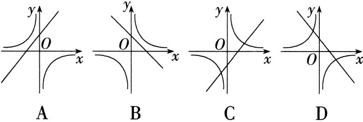 3.(2023山东泰安中考)一次函数$y = ax + b$与反比例函数$y=\frac{ab}{x}(a,b$为常数且均不等于0)在同一坐标系内的图象可能是( )