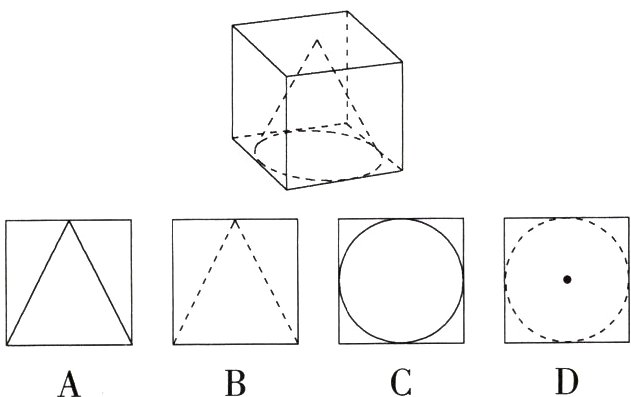 11.(2024陕西师大附中期中,2,★☆☆)如图,一个实木正方体内部有一个圆锥体空洞,它的俯视图是 ( )