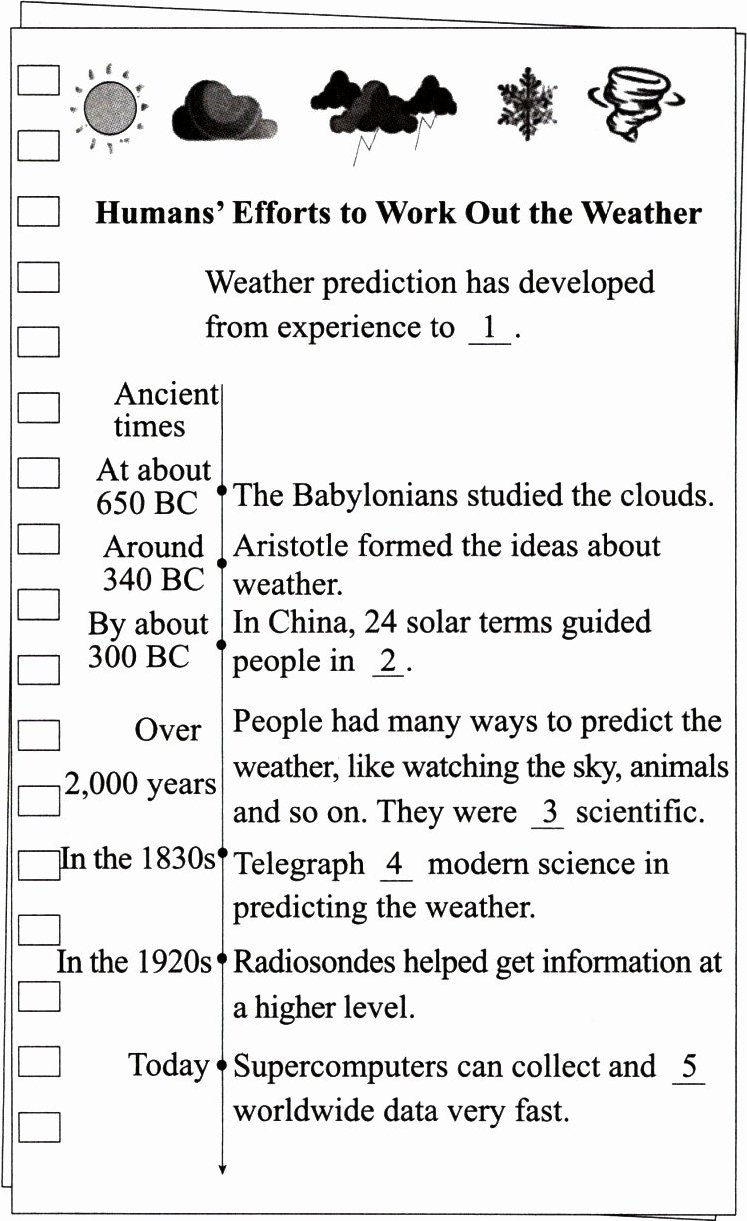 Humans have long tried to predict(预测)the weather. From the hunters of ancient times to today’s pilots, predicting rain or shine can shape people’s life and make a difference.