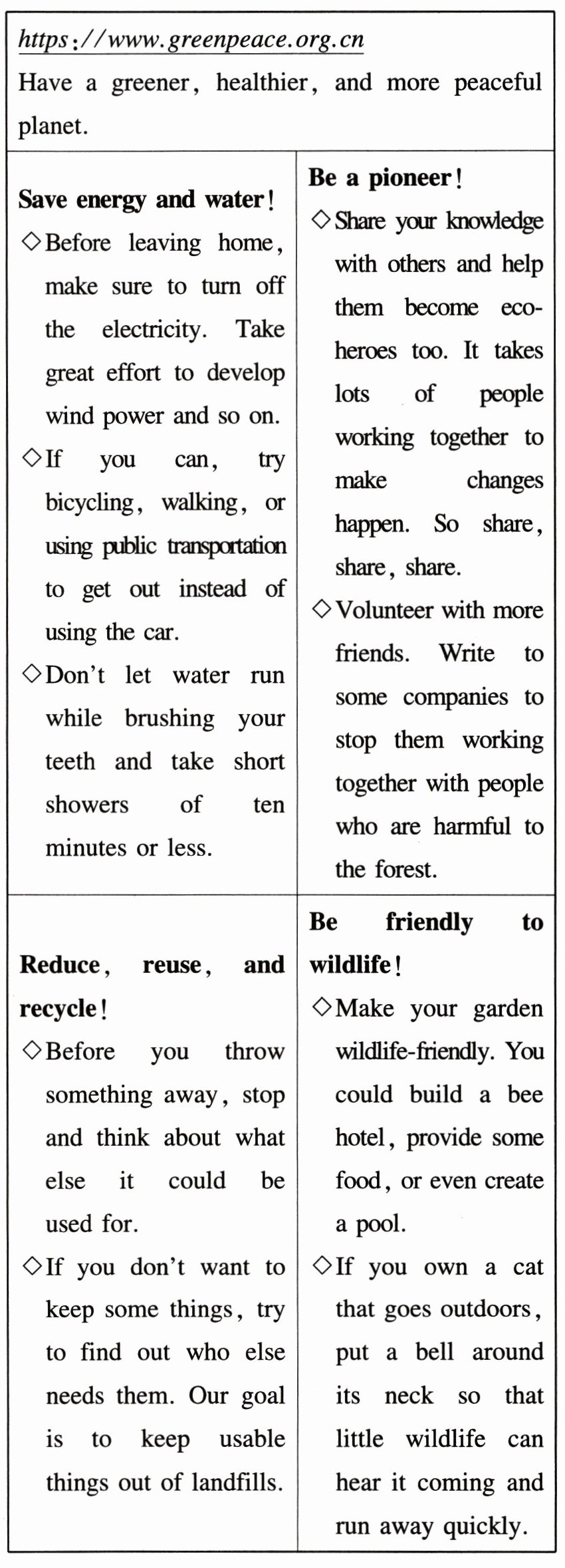 C.Greenpeace provides peoplle with ways of environmental protection online.
