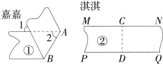 一次数学活动中,要检验两条纸带①②的边线是否平行,嘉嘉和淇淇采用了两种不同的方法:嘉嘉将纸带①沿AB折叠,量得∠1 = ∠2 = 59°;淇淇将纸带②沿CD折叠,发现CN与CM重合,DQ与DP重合(点C在MN上,点D在PQ上),如图所示.下列判断正确的是 ( )
