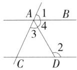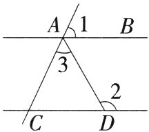 2.(2024江苏苏州中考)如图,AB//CD,若∠1 = 65°,∠2 = 120°,则∠3的度数为 ( )